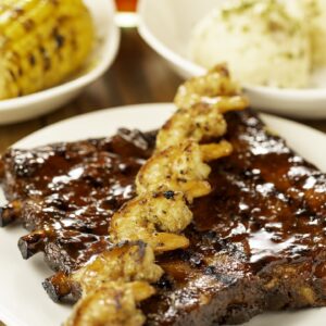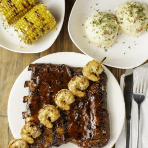 Half Rack Pork Ribs and 6 Grilled Shrimp